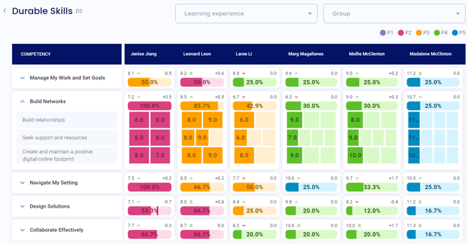 Here is how portfolios look from a facilitator perspective on the progress tab in the Durable Skills competency area: